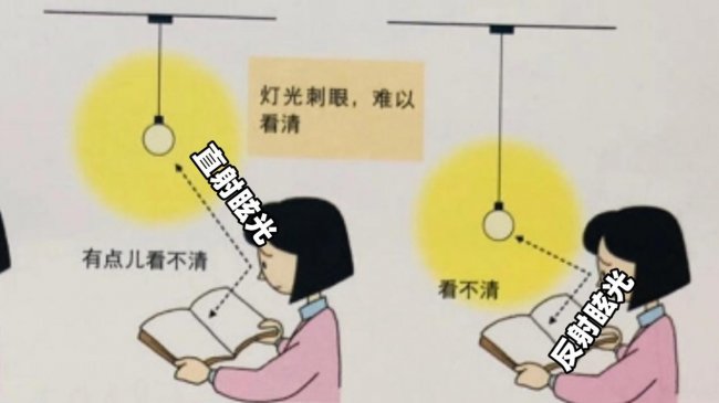 (2)反射眩光:光线在光滑的铜版纸书页或平板屏幕上形成反光,晃得人看不清内容。