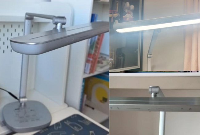 如果单看光谱结构,它不算护眼梯队里的顶级选手,但在智能体验和做工方面层面确实拉回不少分。金属加工程塑料,双灯臂加球形关节调节很灵活。灯头顶部全域触控感应,手背轻触就能调,功能支持3300K-5300K色温调节,还有环境光感应自动调光,用起来顺手省心。