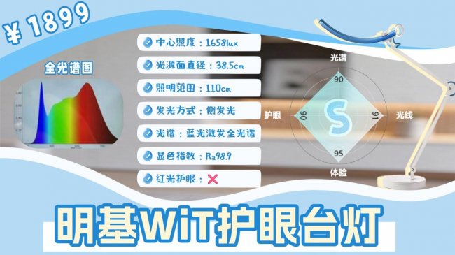 误区二:价格越贵,护眼效果越好价格高不等于护眼效果好。有些千元级台灯,品牌溢价、设计成本、营销费用占了大头,核心的灯珠选型和光学技术反而表现平平。反倒是一些百元档的型号,在光谱上做足了功夫,实现了越级的护眼表现。