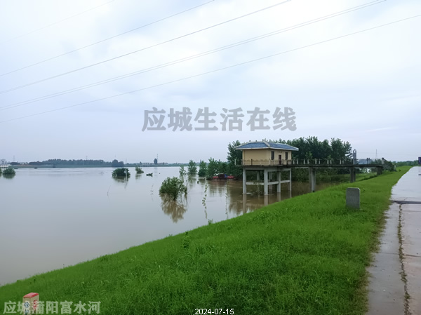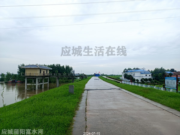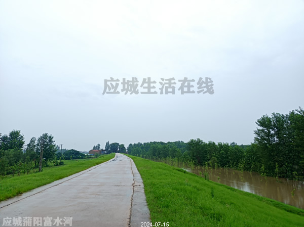 府河应城段,东马坊郑夏村府河堤,这里与云梦县道桥镇交界,沿这个堤可以到孝感朱湖。拍摄于2024年7月15日,涨水时拍摄。