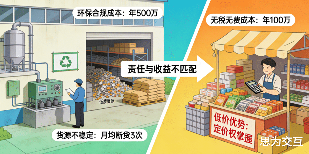 第一,责任与收益的不匹配。规范企业背负着环保合规的高昂成本,却难以从源头上获得稳定、高质的货源;而游商无税无费,反而凭借成本优势掌握了定价权。
