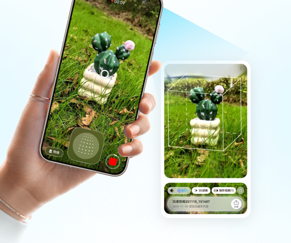 作为影像机皇,华为Pura 80系列在鸿蒙操作系统6的加持下,影像体验再上台阶。Remy 3D影像功能打破了传统2D记录的局限,让美好瞬间更具沉浸感。拍摄时,只需手持手机环绕对象拍一段视频,无论是旅行中的壮丽风景、孩子的成长瞬间,还是精心准备的生日蛋糕,系统都会自动生成3D沉浸空间。