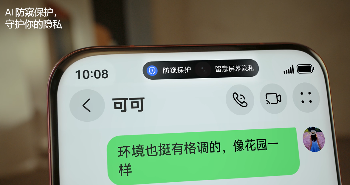 此外,鸿蒙操作系统6在流畅性与安全性上的升级也不容忽视。通过内存管理与后台调度优化,即使同时运行多个大型APP,手机依然丝滑流畅,长时间使用也不易卡顿;AI防诈功能能智能识别7类电信诈骗套路,弹窗预警并支持亲情防诈,一人标记高风险电话全家受益;升级后的AI防窥功能的智能隐藏相册、金融账单等敏感内容,加密分享可设置“仅查看一次”,从源头守护隐私与财产安全。