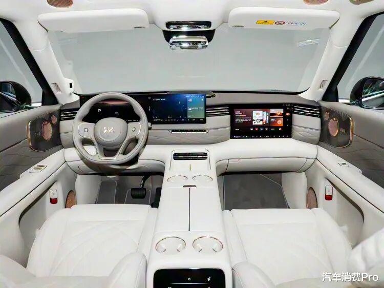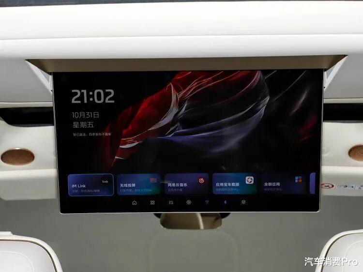 舒适性是新车的核心亮点,其采用2+2+2的6座布局,全车包括副驾、二排座椅在内共有三个零重力座椅,一二排座椅支持联动,诸如21.5英寸4K二排娱乐屏、12.3L双开门冰箱、小桌板等配置也都没有缺席。