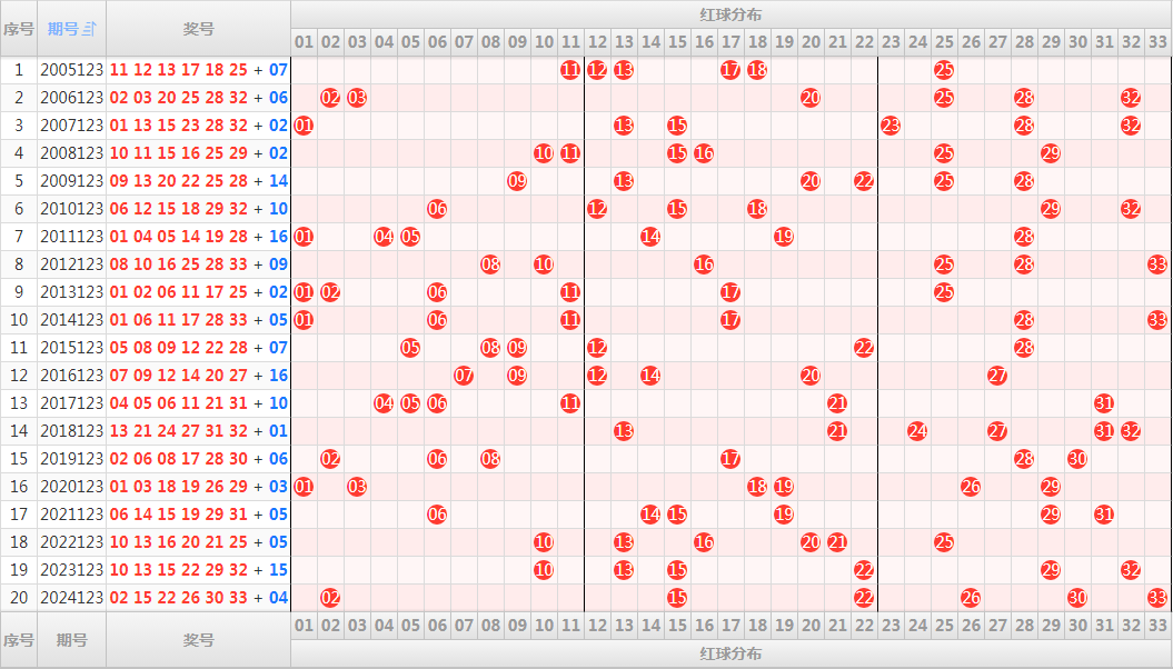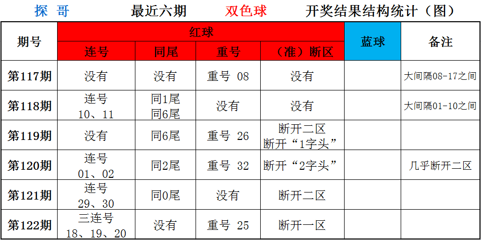 开奖号码结构:红球一对三连号18、19、20,没有同尾,重号25,断开一区。