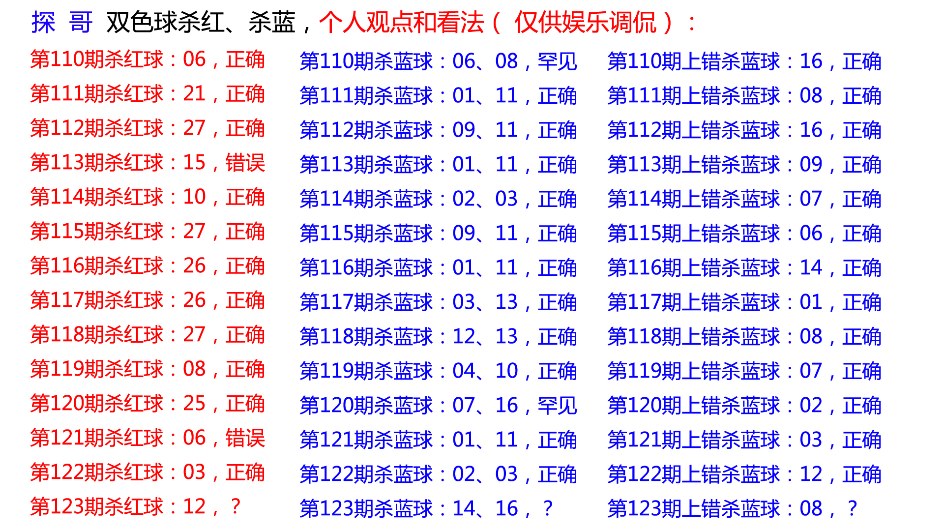 四、本期红球、蓝球杀号(个人观点看法,仅供娱乐调侃):
