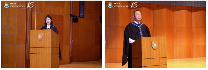 毕业生代表——创新营销与敏捷组织(IMAO)8班杨溶、管理心理学(MPSY)上海9班陈扬分别发表致谢词。