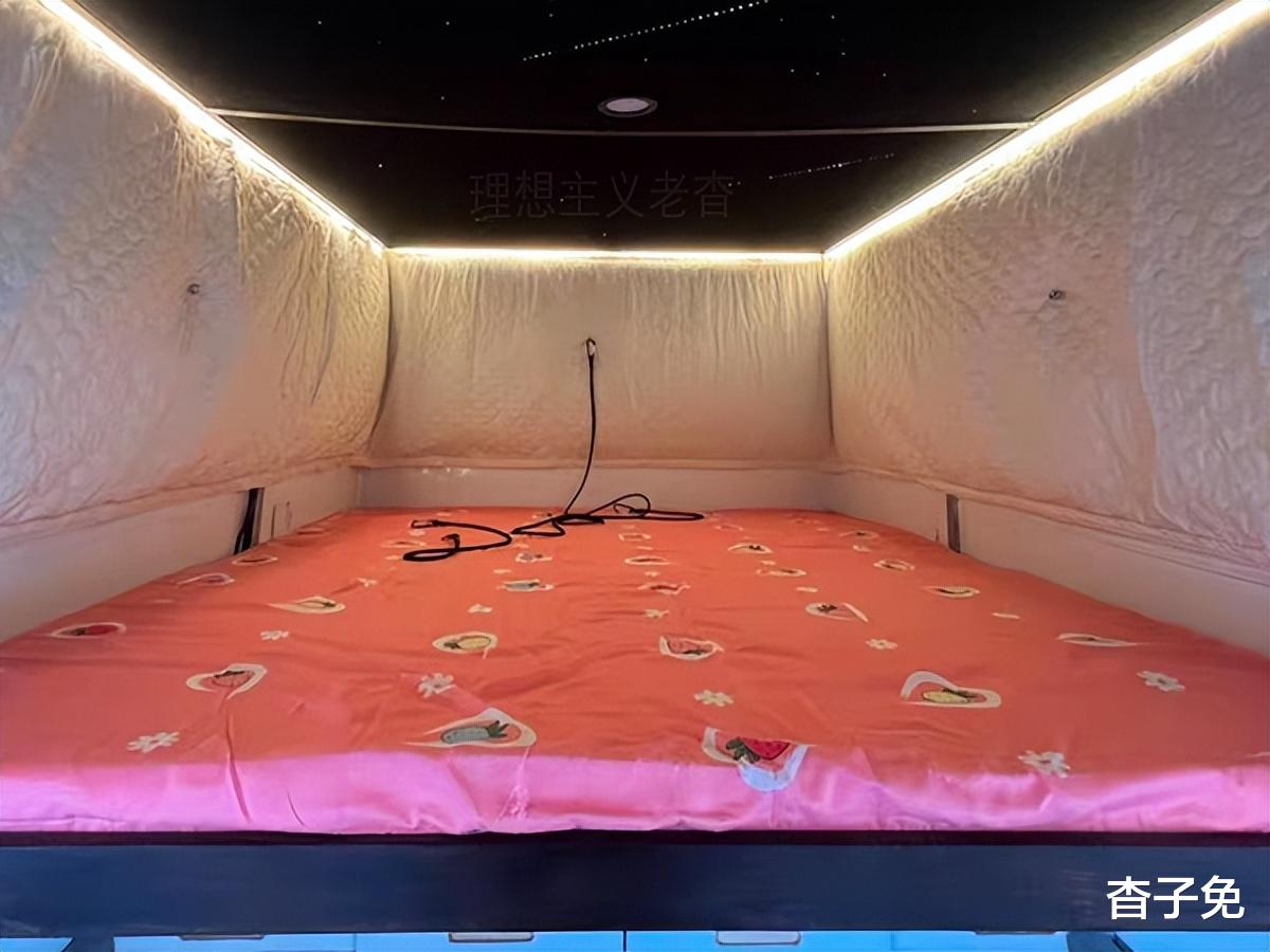 额头床才是真正的卧室区,床铺非常平整,包围也很厚实暖和,天花板还是星空顶,入睡效果很棒,这才是移动的小家。