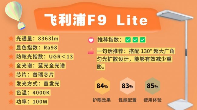 护眼大路灯第七名:飞利浦F9 Lite;支持入座感应以及色温调节,满足不同灯光需求。