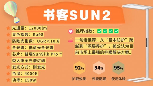 儿童护眼大路灯第一名深度解析:书客护眼大路灯SUN2;超过100家电媒体实测,深度护眼指数第一,有效延缓83%用眼疲劳并降低92%近视风险!