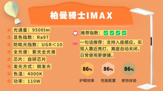 护眼大路灯第三名:柏曼骑士I MAX;支持入座感应,实现人靠近亮灯、离座自动关闭,日常使用更便捷。