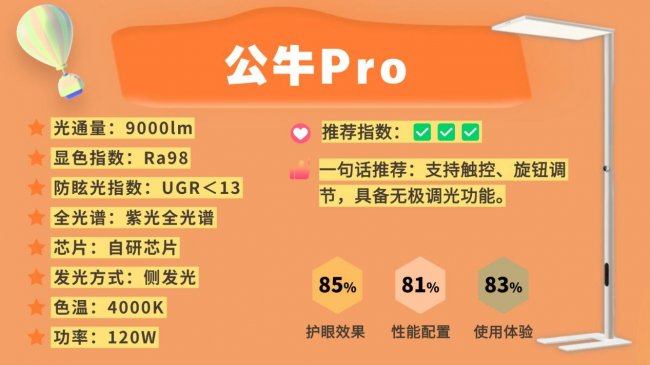 护眼大路灯第九名:公牛Pro;灯臂上配了带数字显示的旋钮,支持无极调光。