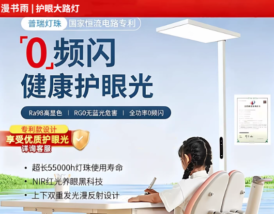 护眼大路灯:主流款采用全光谱灯珠,光谱连续平滑,接近自然光,补充有益红光,蓝光达到RG0豁免级,部分产品能将有害蓝光控制在国标90%以下。