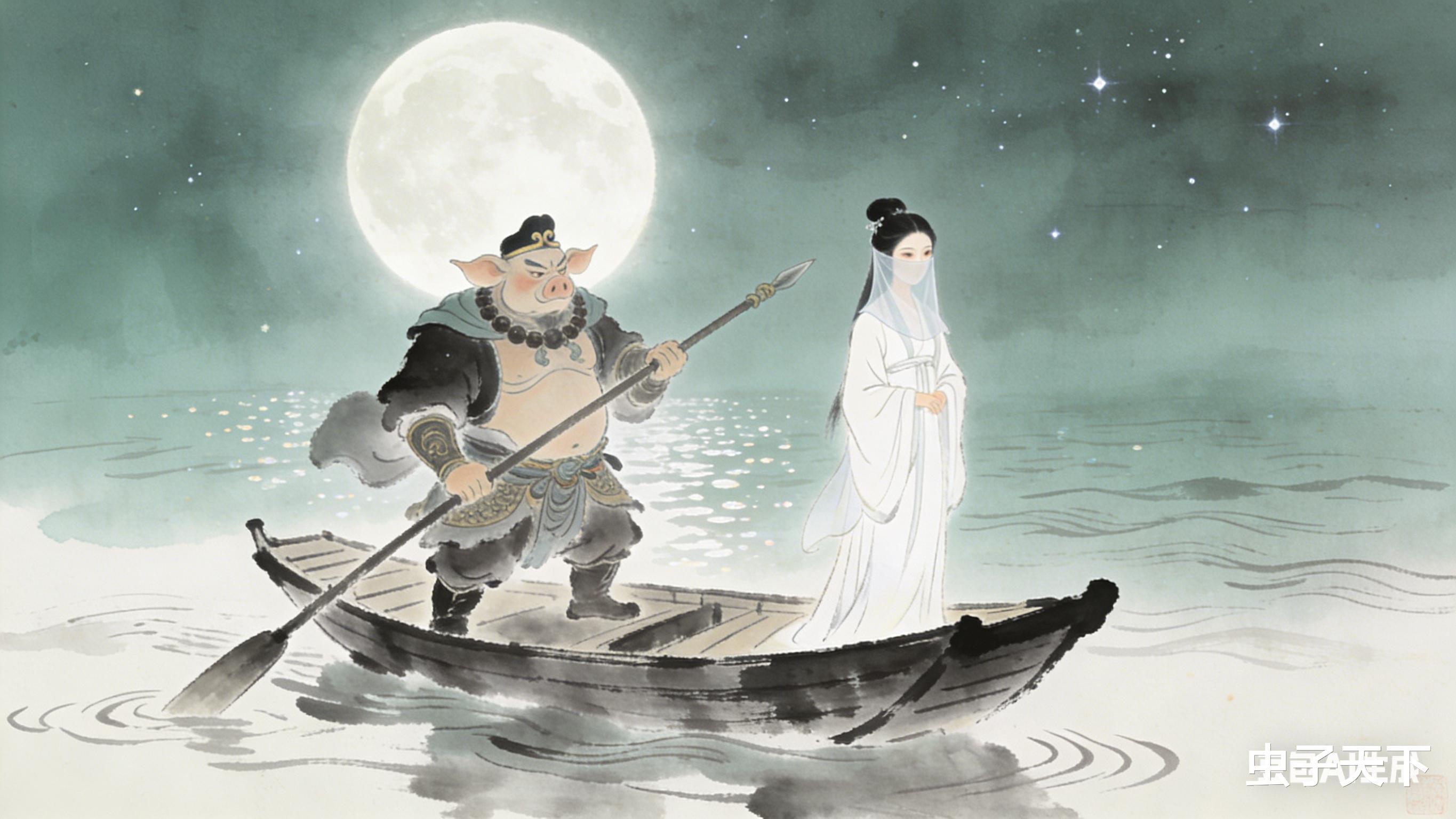 八戒手一抖,船桨差点掉河里:“姑娘饶命,俺老猪这辈子再也不背女人过河了!”