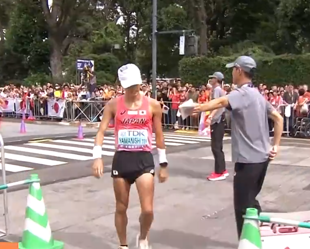果然,在14公里附近,日本选手山西利和跑到了第一位。