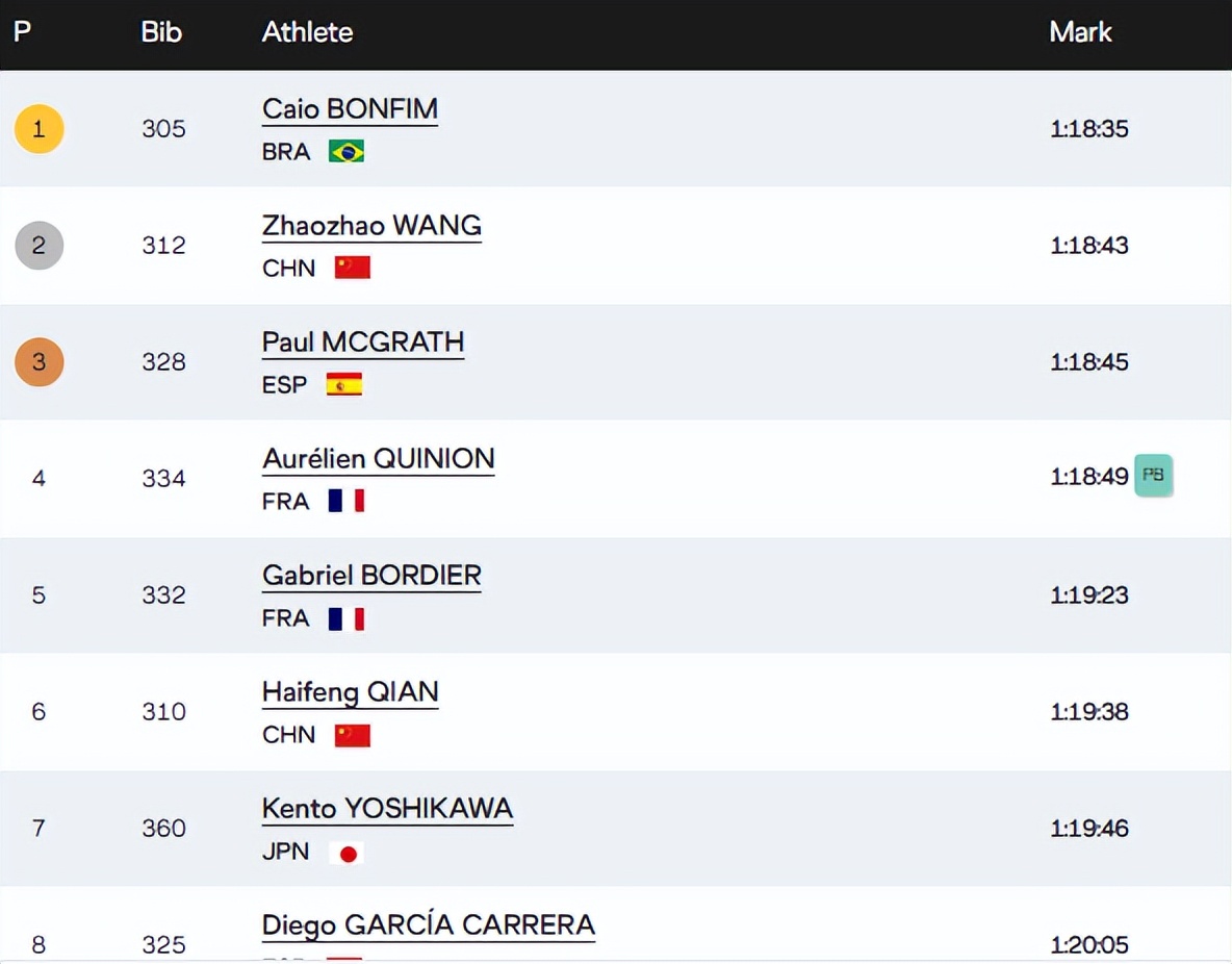 其余两名中国选手,钱海峰拿到第6名,李陈杰拿到第24名。