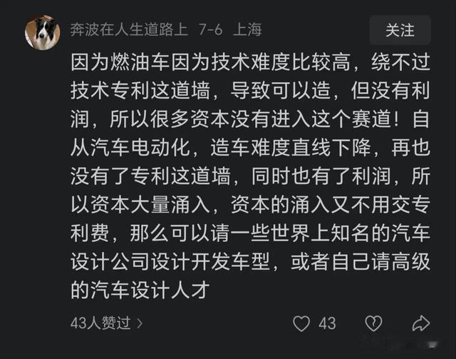 因为燃油车因为技术难度比较高,绕不过技术专利这道墙,导致可以造,但没有利润,所以很多资本没有进入这个赛道!自从汽车电动化,造车难度直线下降,再也没有了专利这道墙,同时也有了利润,所以资本大量涌入,资本的涌入又不用交专利费,那么可以请一些世界上知名的汽车设计公司设计开发车型,或者自己请高级的汽车设计人才。