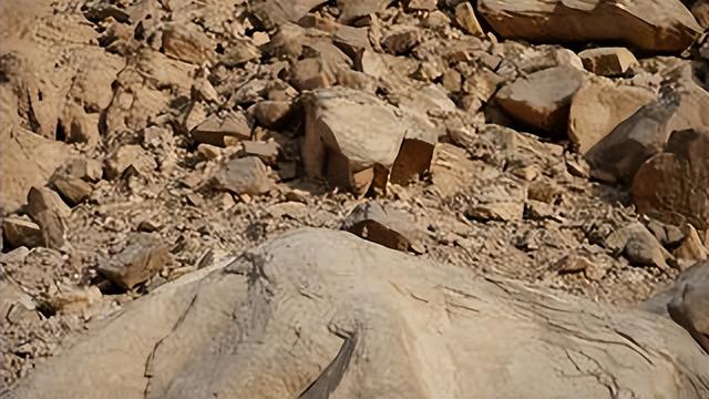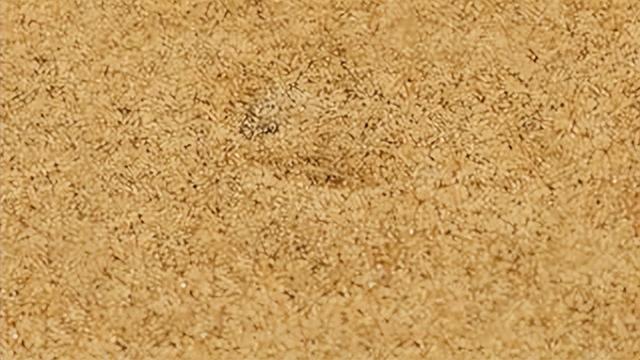一条隐藏在沙子下的毒角响尾蛇,在这张照片的某个地方,可以在沙子里看到一只金色的眼睛。