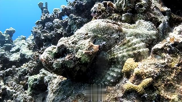 躲在死珊瑚中的石鱼,是世界上最毒的鱼,仔细观察,你可能会看到一张脸从珊瑚中浮现出来。