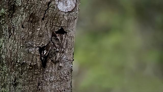 棕色爬山虎的羽毛使它们在树干上很难被发现,这些中美洲的鸟常在大树上盘旋,寻找松散的树皮筑巢。
