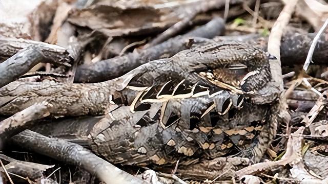 小心你踩的地方!伪装的毒蛇隐藏在森林地面的落叶中。