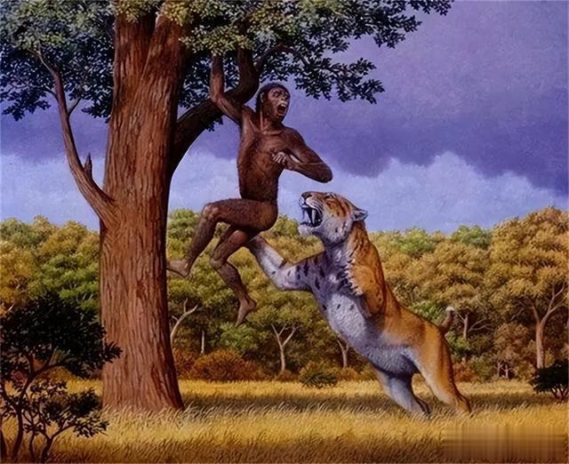恐猫和巨颏虎曾经是人类最大的天敌,其中恐猫主要以狒狒为食,偶尔会捕杀人类直系的祖先南方古猿,而且从恐猫的牙齿结构以及被恐猫咬死的南方古猿来看,它们很有可能是从背后偷袭,然后用强大的犬齿将古猿的头盖骨掀开。