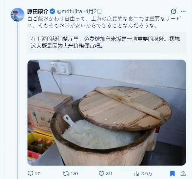 日本网民热议上海餐厅免费米饭