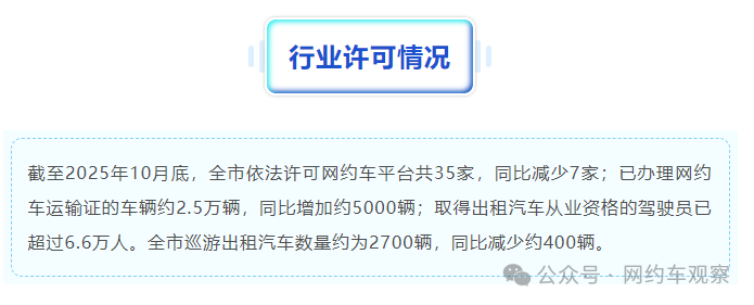 11月12日,珠海市交通运输局发布网约车行业风险提示。数据显示,截至2025年10月底,全市持证网约车平台仅剩35家,较去年同期减少7家,而实际运营车辆却增至2.5万辆,从业驾驶员已突破6.6万人。