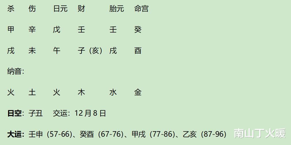 甲杀,地支得1未库1亥长生1纳音木,1.5强根力量,极强水平。