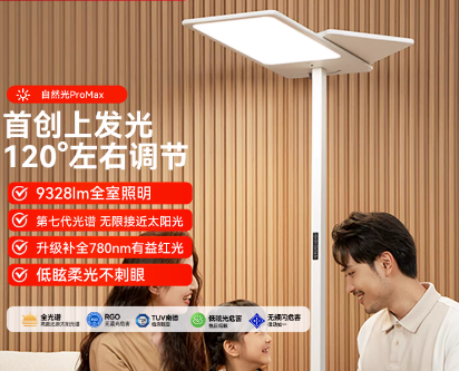 琪朗ProMax在参数和设计上均表现出色,适配对光照体验要求较高的场景。桌面中心照度高达1800lx,照度均匀度低至1.12,上发光面可左右120°旋转调节,能轻松照亮20平方米空间,有 效消 除室内暗角,避免明暗差过大带来的视觉疲劳。此外,它还配备红外感应功能,支持自动开关灯和环境光自动调光,使用便捷。