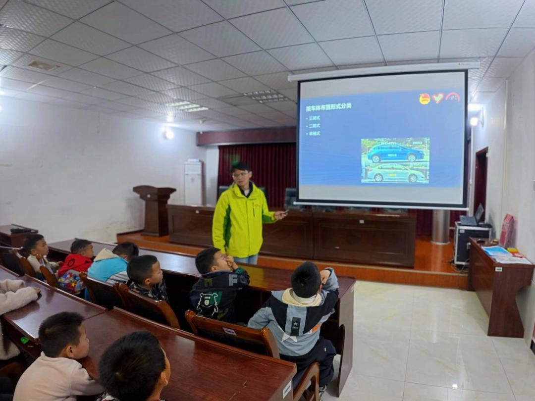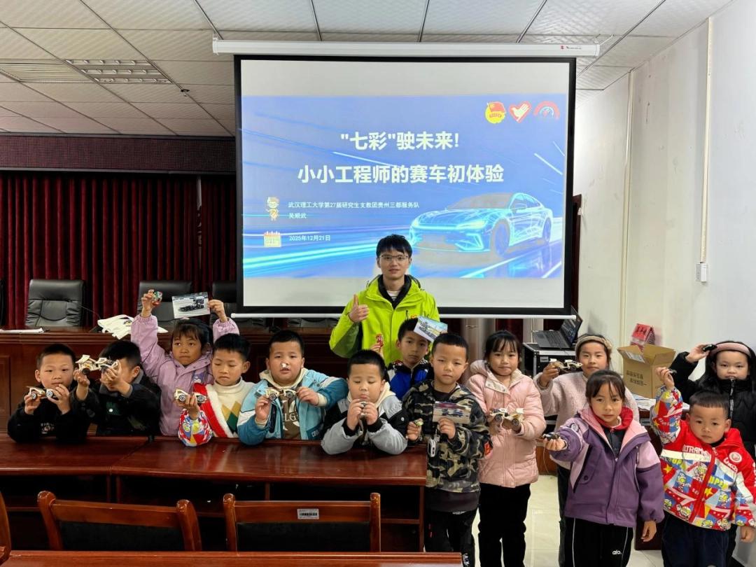 12月21日下午,武汉理工大学第27届研究生支教团贵州三都服务队志愿者吴顺武在麻光社区为当地小学生带来了一堂别开生面的汽车科普公益课程——“七彩驶未来!小小工程师的赛车初体验”。本次活动通过生动讲解与动手实践相结合的方式,带领孩子们走进汽车的世界,感受科技与工程的魅力。