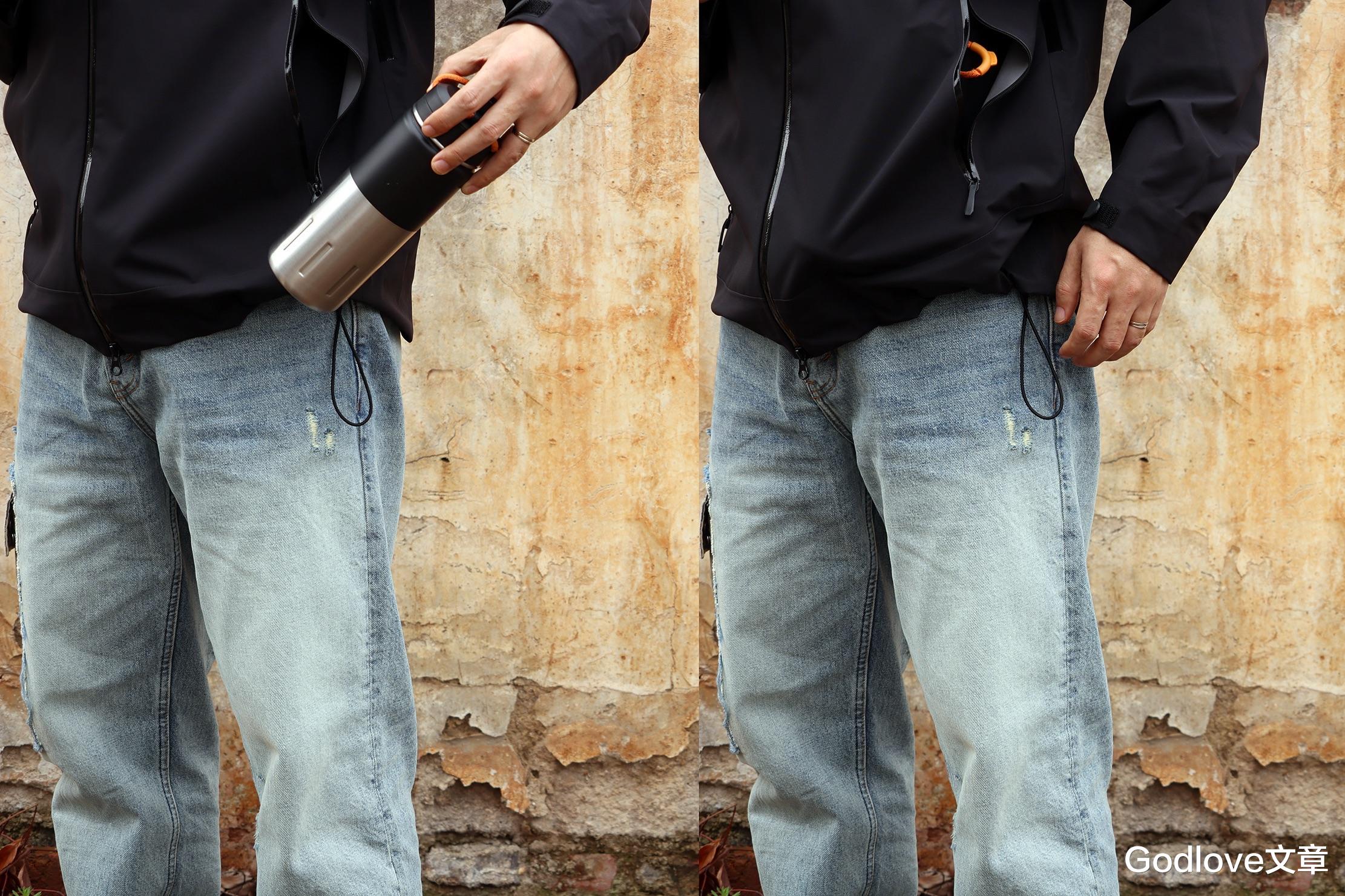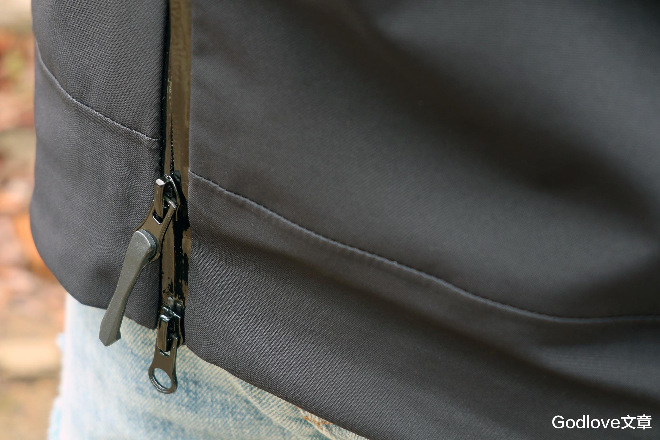 两侧口袋不但为隐藏式拉链袋设计,其容量也很够用,笔者大尺寸的户外水壶也能够全部收入进去。