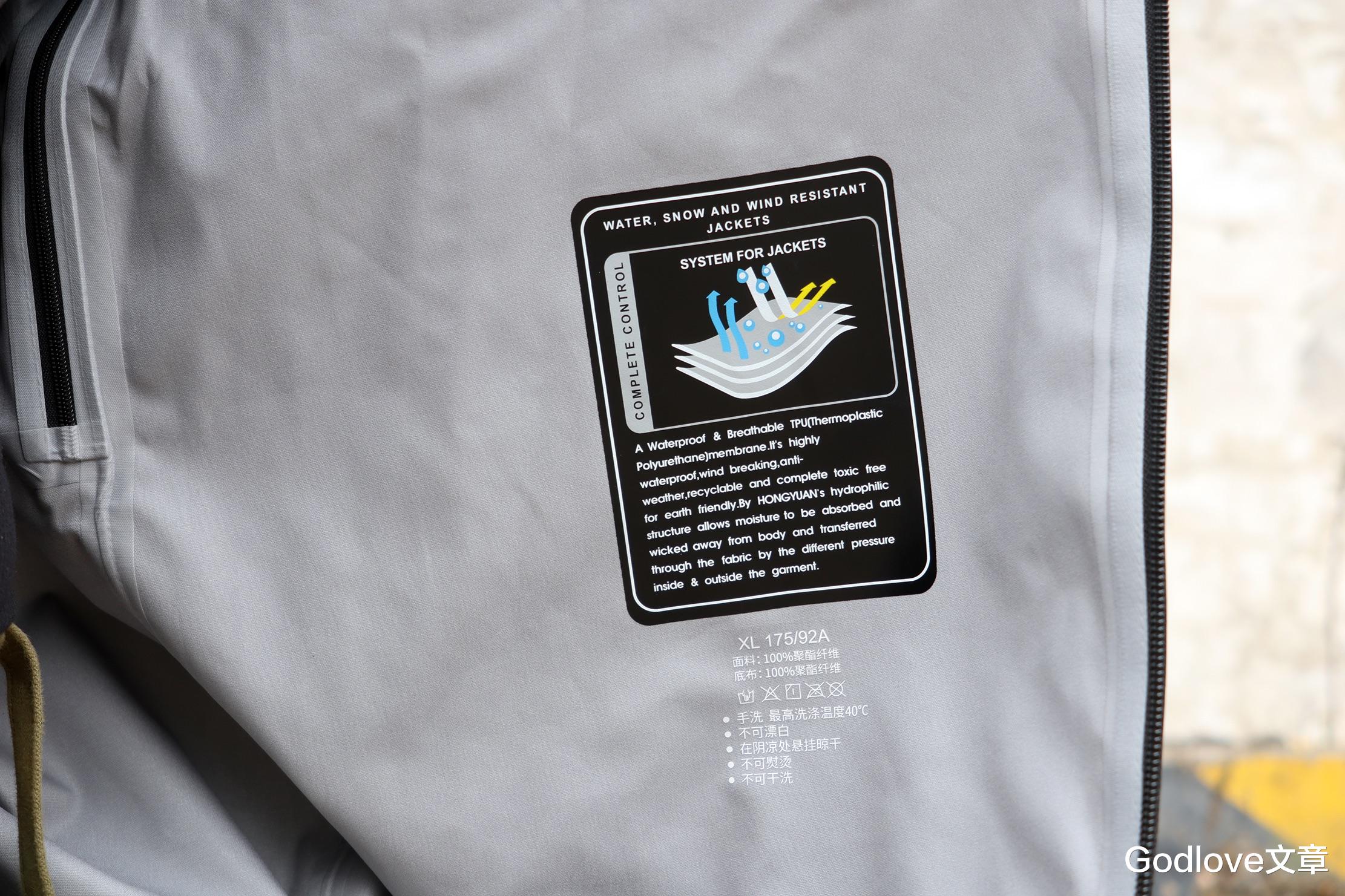 VBREX冲锋衣内部所有接缝都做了全压胶密封处理,接触皮肤的部分触感顺滑。