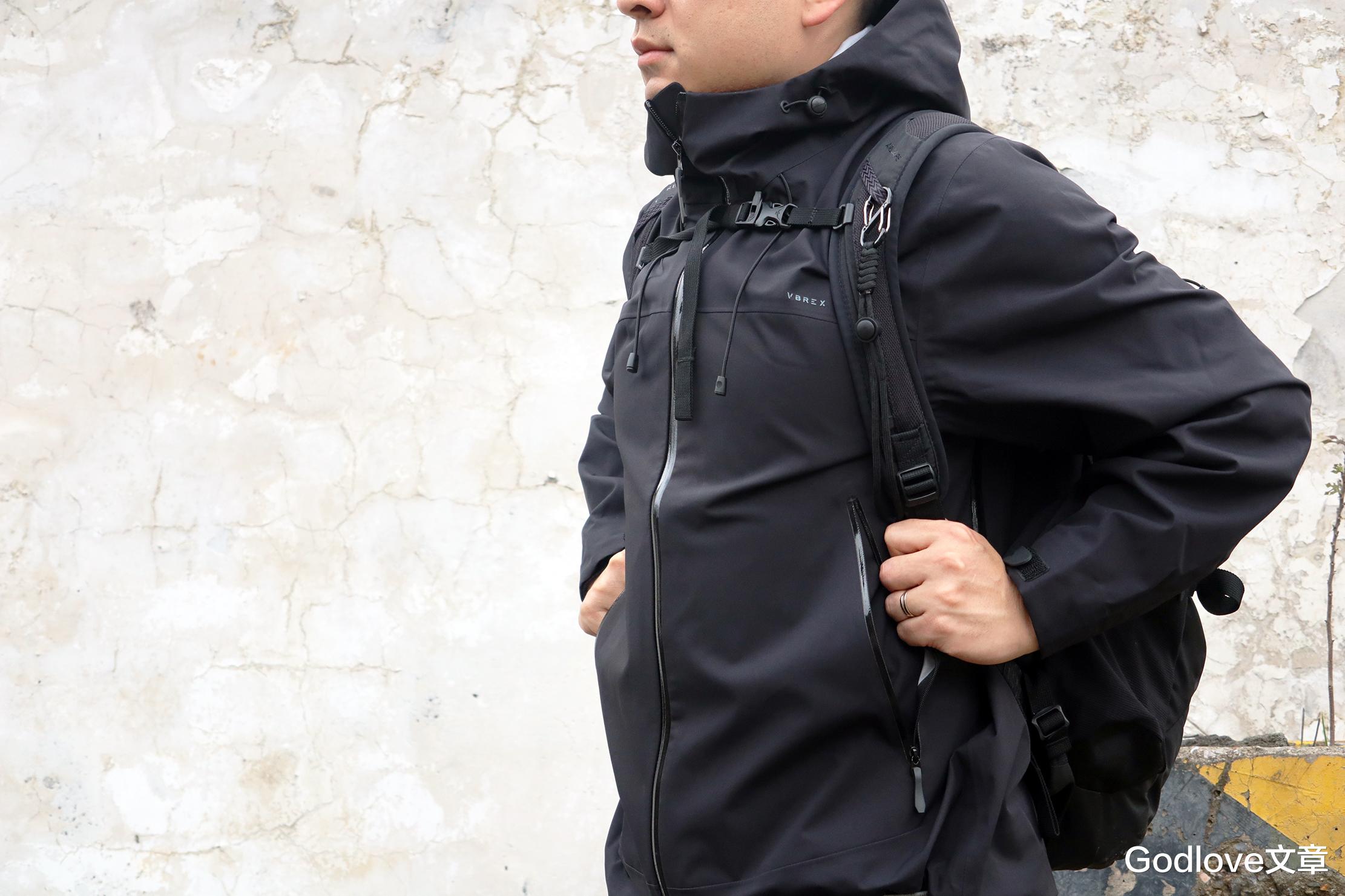 VBREX冲锋衣没用三合一的结构设计,简约硬壳单冲,给人利落不臃肿的第一感受,三合一设计臃肿,透湿差,仅适合轻度休闲场景。除了笔者此次体验的黑色另外还有橙色的选择,都很符合日常通勤和户外活动的两种环境。衣服面料采用STOPS-X七防科技面料实现户外级防风、防水、防污、防磨损、防划、防油、防静电,整体还有哑光质感。