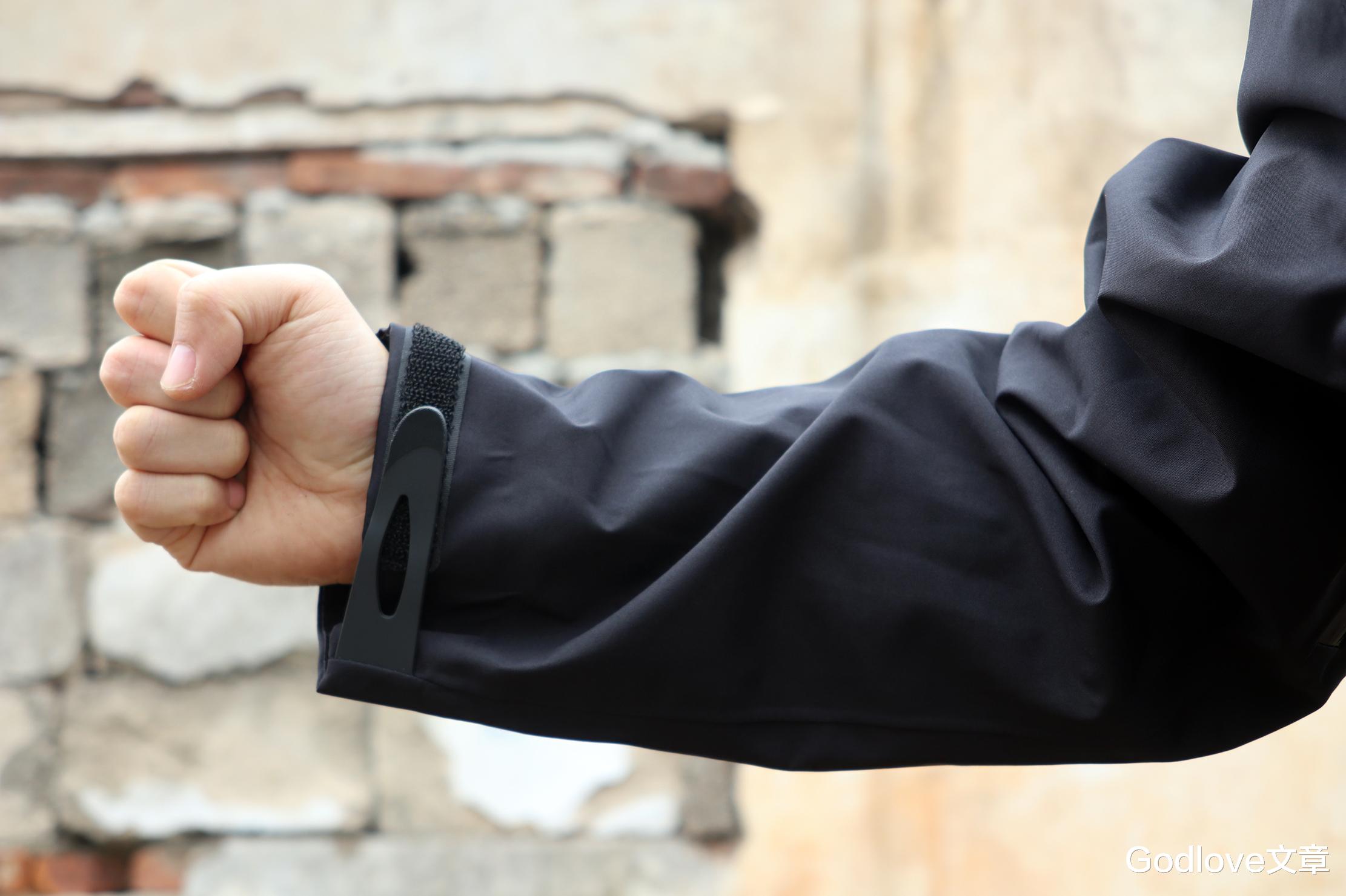 可调节袖口搭配有魔术贴,耐用、不勾丝,反复开合不失效。