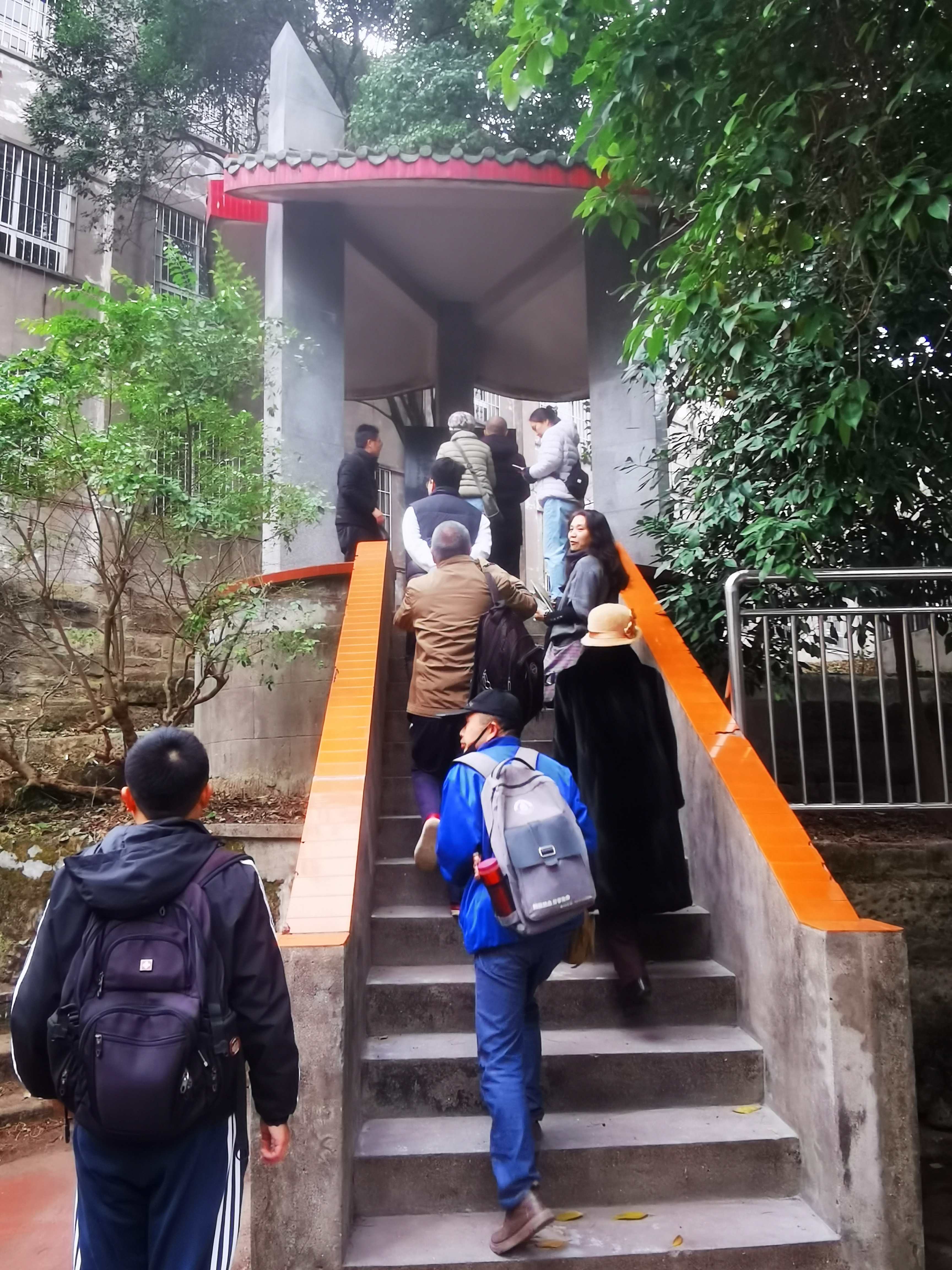 进入红旗小学后,大家纷纷走进国立自贡工业专科学校纪念亭。