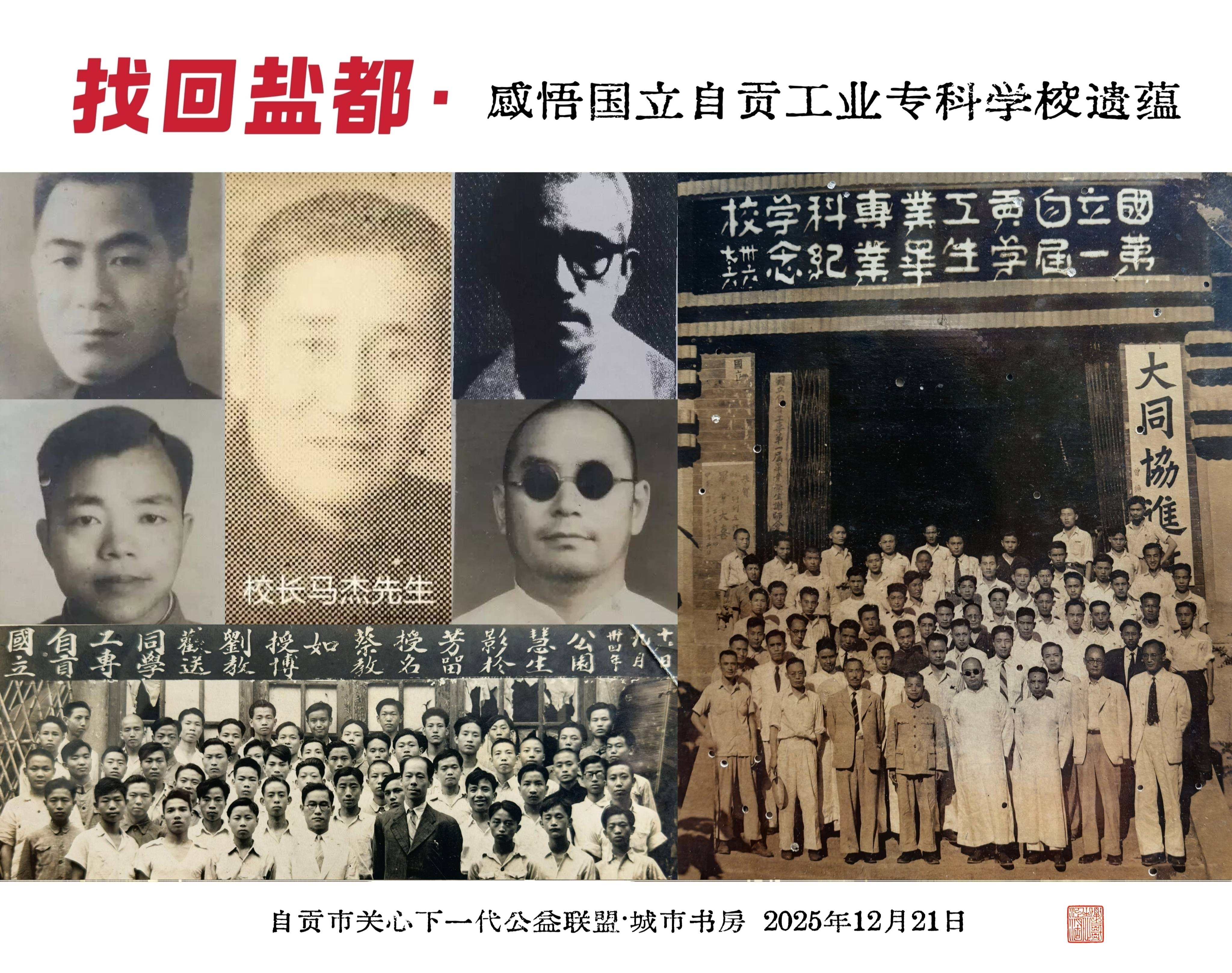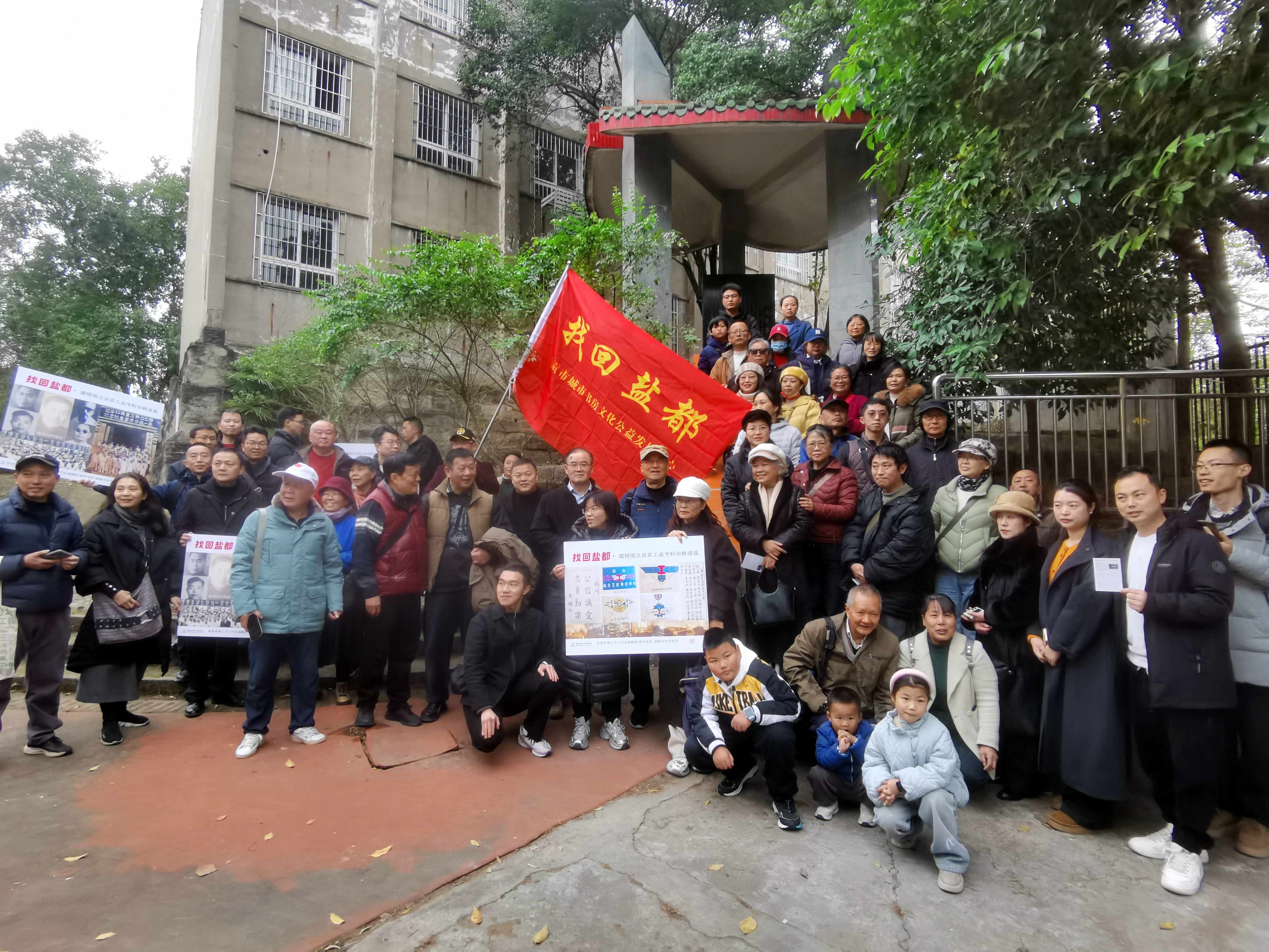 冬至时节,自贡城市书房“找回盐都”研学游活动再次启航。数十名历史文化爱好者跟随陈星生老师走进一对山原红旗小学,感悟国立自贡工业专科学校遗蕴,追寻中国工业文明之光,在抗战烽火中的承古开新。