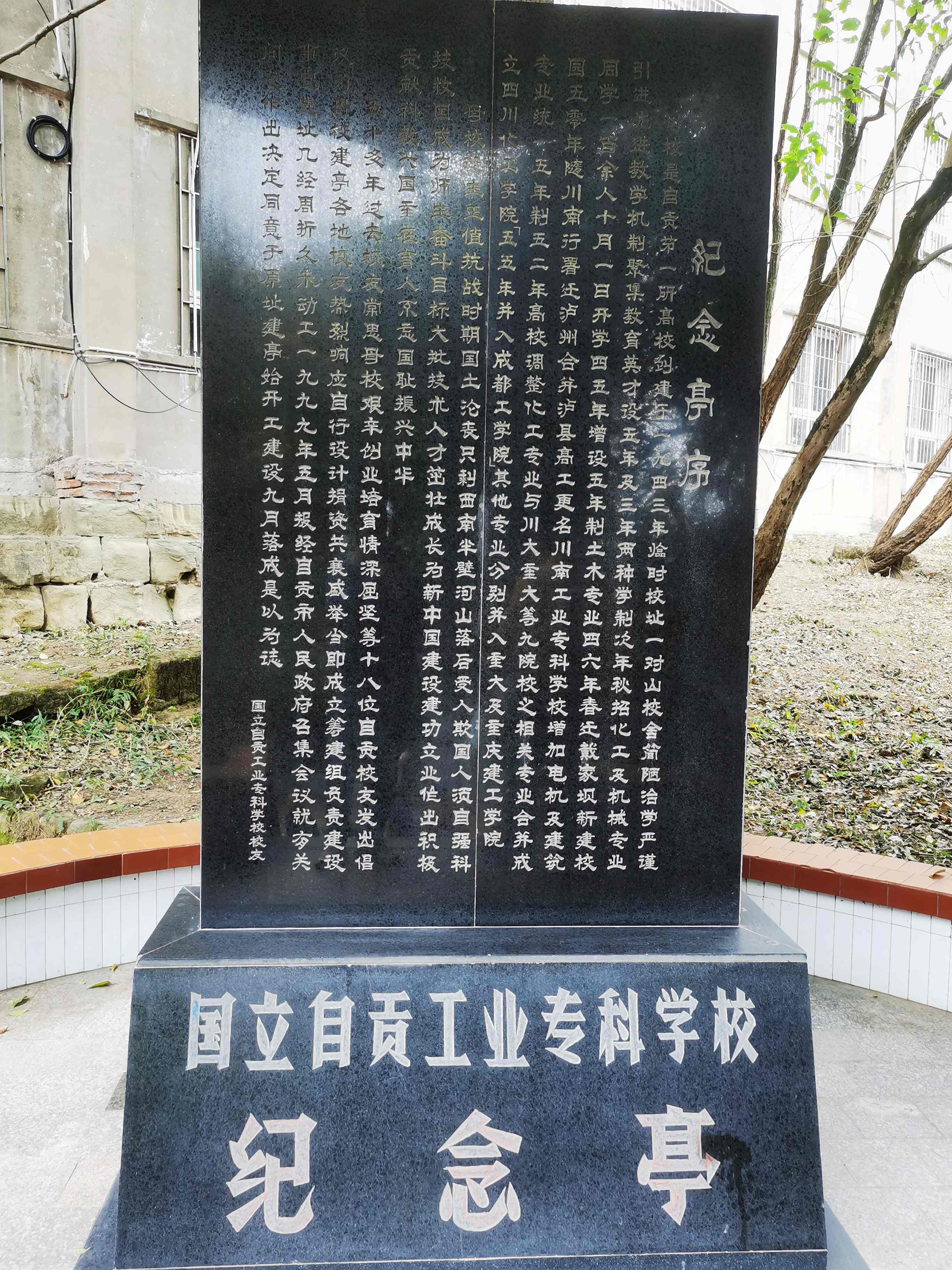 1999年,“国立自贡工业专科学校”的校友在山上的红旗小学内,捐资建起了一座“自贡工业专科学校纪念亭”。