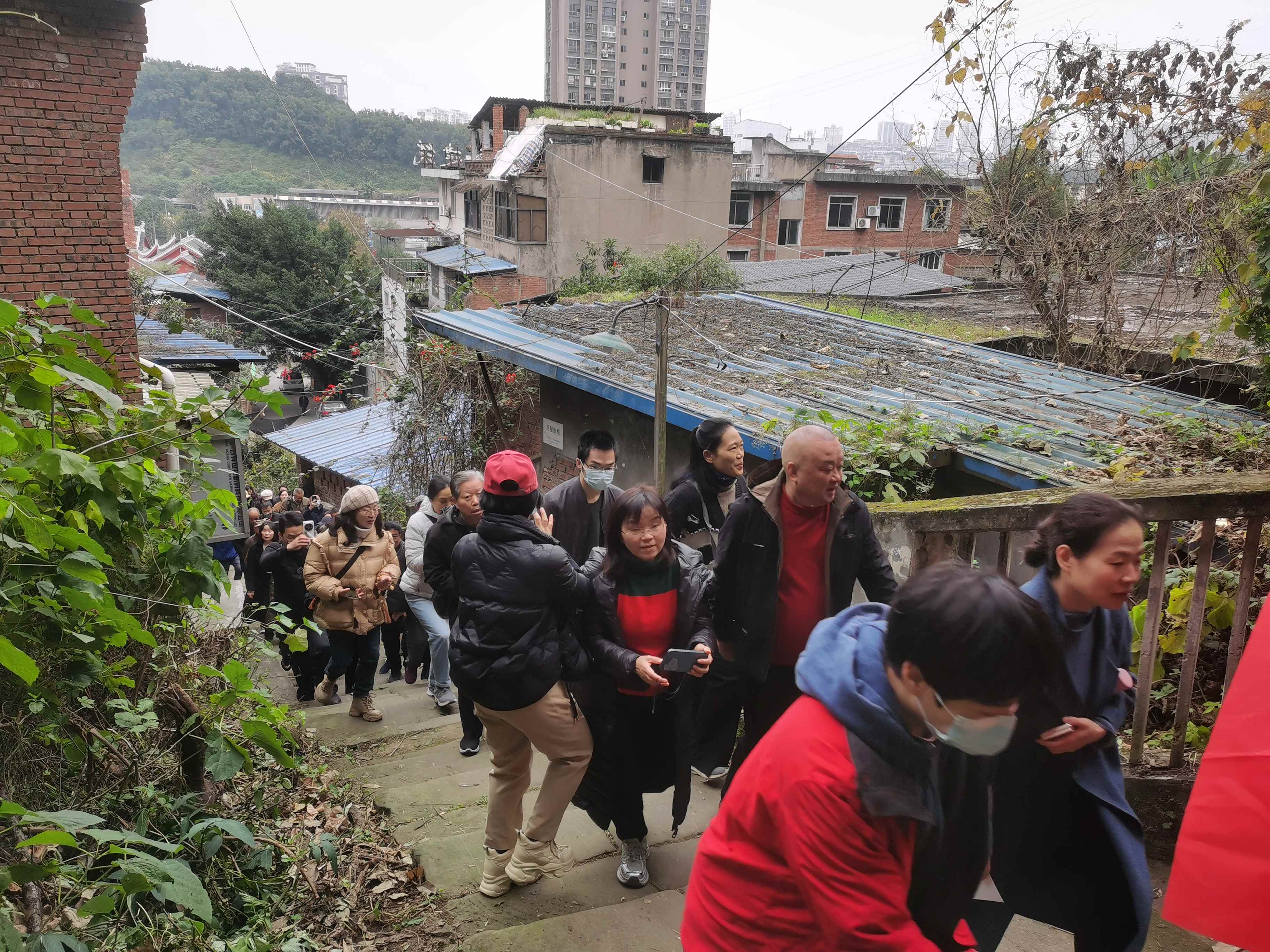公路尽头变为陡峭的石板路,这段原汁原味的石梯步颇能体现自贡“小山城”特色。