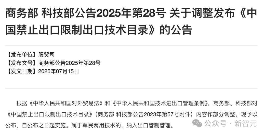 禁止出口:绝对不能卖给外国人的技术限制出口:可以卖,但必须先申请许可证自由出口:随便卖人工智能相关技术目前主要被列为「限制出口」类别。