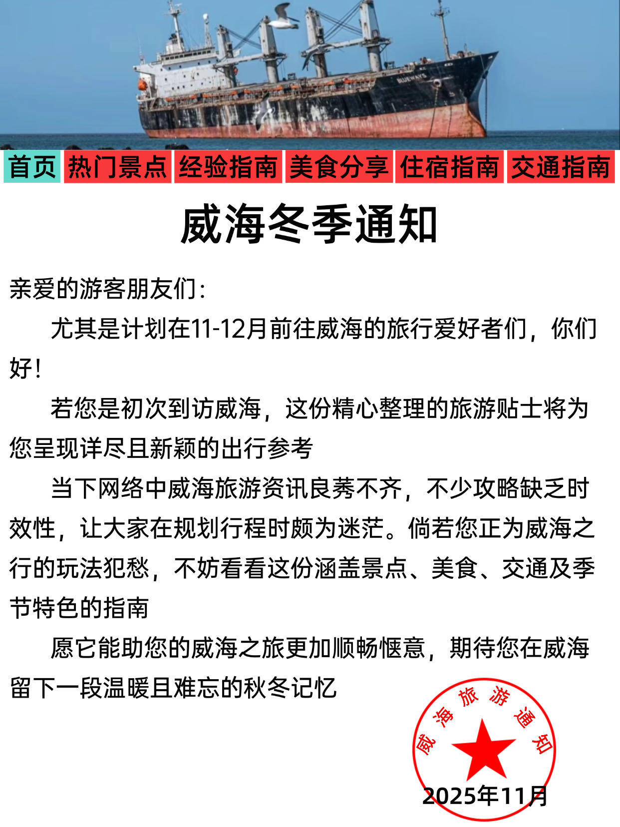 计划11-12月去威海的宝子们看过来!这份超实用的秋冬旅游指南请收好~👇