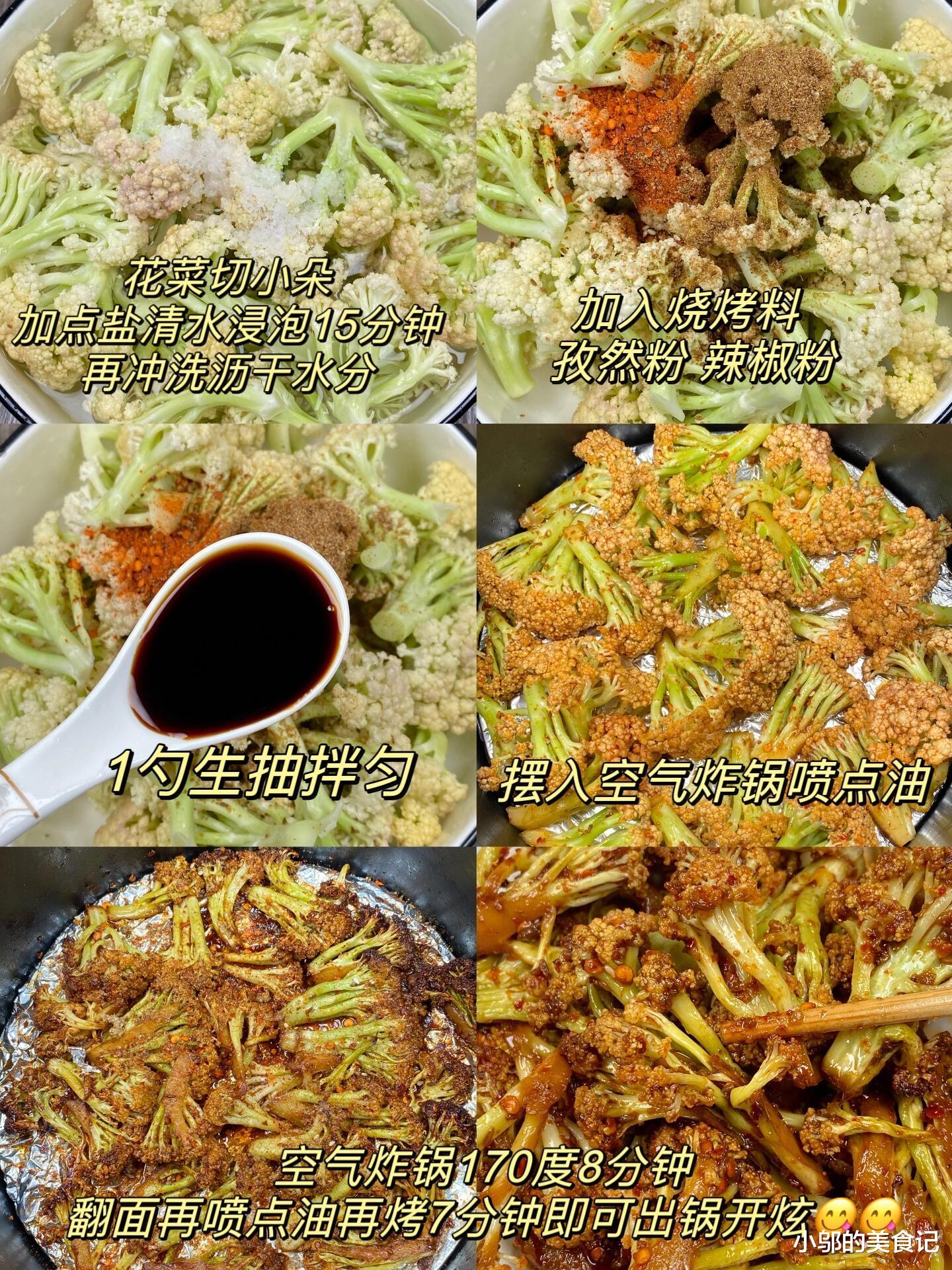 空气炸锅版低卡干锅花菜:香辣过瘾,好吃到舔手指!家人们谁懂啊!今天这道低卡干锅花菜,我愿称之为“减脂期的救星”!花菜烤得外焦里嫩,裹着香辣孜然的烧烤料,咬一口“咔嚓”脆,根本停不下来。关键是少油低卡,吃多了也不怕胖,连平时不爱吃蔬菜的朋友都抢着吃。以前总觉得干锅花菜必须用大火爆炒才够味,直到试了这个空气炸锅版,才发现原来健康版也能做出烧烤摊的香气,厨房小白也能轻松拿捏。今天就把这个“神仙做法”掏心窝子分享出来,保证你学会后,家里的空气炸锅再也不会闲置了。