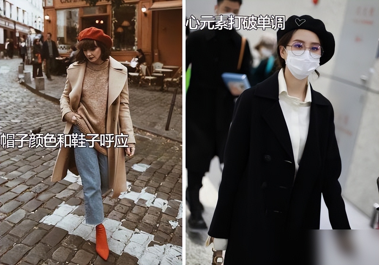 贝雷帽配大衣像画报里的法式女郎,搭毛衣又添几分温婉。