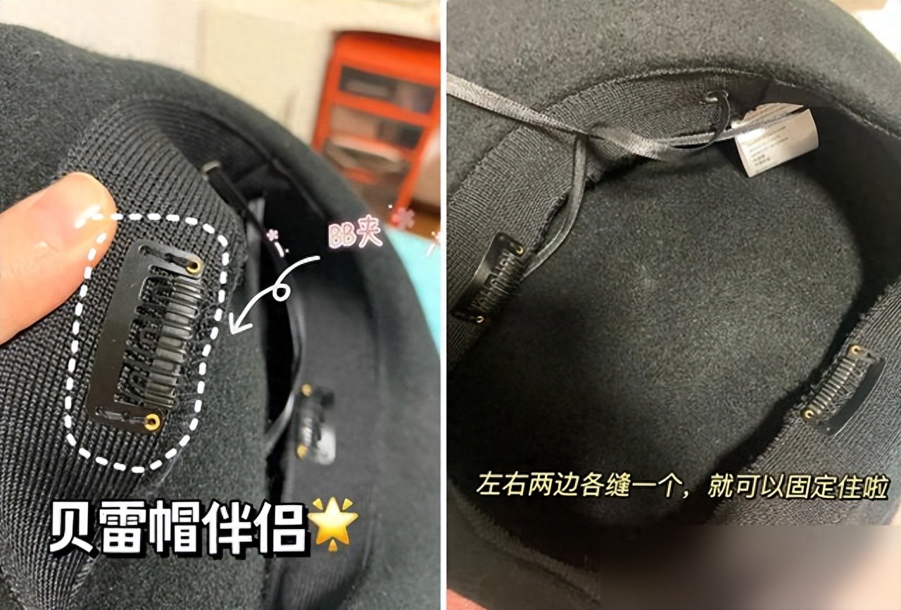 出门前用小发夹固定两侧,风再大帽子也稳如泰山。