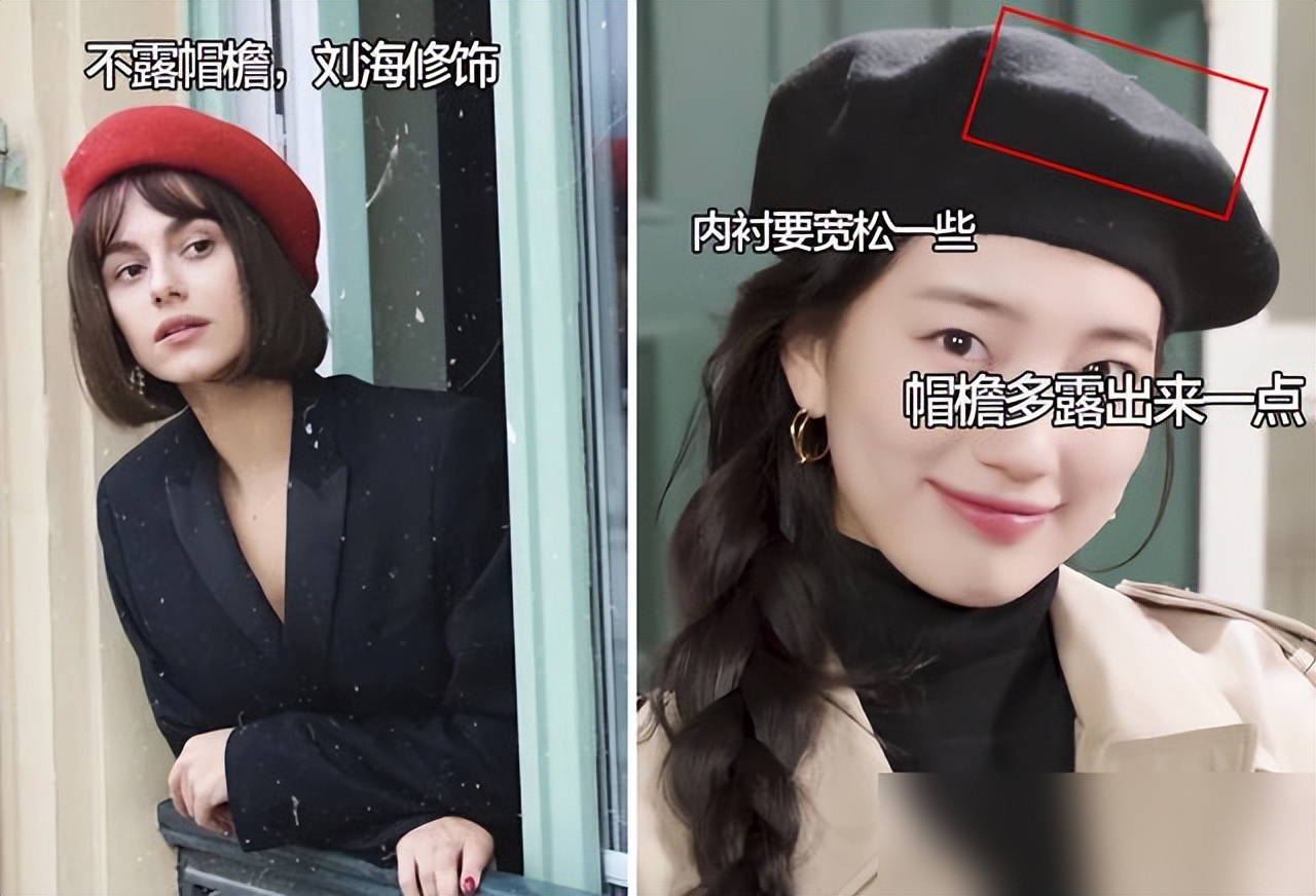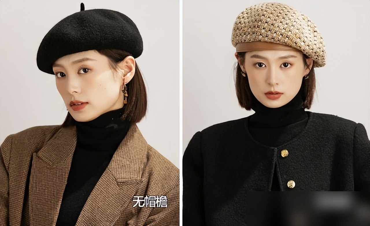 见过不少姐妹随便一戴就像厨师帽,问题出在细节——帽口要对准眉骨,别压太低,否则拖沓显老气。