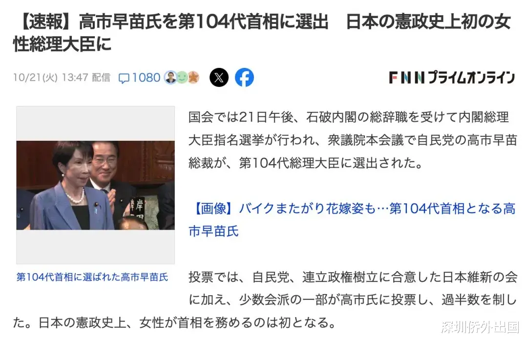 就在刚刚,自民党总裁高市早苗在国会首相指名选举中胜出,成为日本宪政史上首位女性首相。这一突破性事件不仅标志着日本政治格局的重大转变,更将对在日外国人的生活产生深远影响。高市早苗被誉为“日本的川普”,日本人还是比较恐惧她对日本进行“川普式”改革。