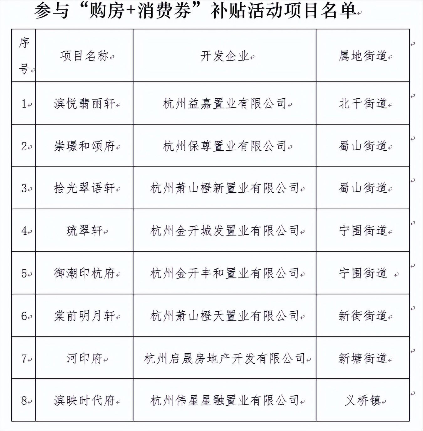 就在临平区发出购房消费券的通知后,萧山区也紧跟步伐,发布购房消费券,同样是每套房10万元,共有5000万元的份额。