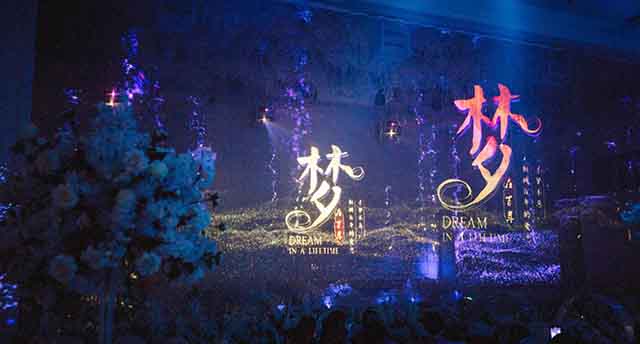 此婚礼以终身的爱为主题。在婚礼上,各种奇幻场景层出不穷,并加入了我国婚礼元素,营造出一同的浪漫气氛。