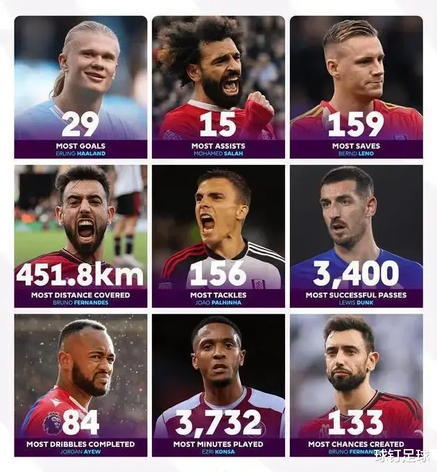 2023年,B费在英超联赛的跑动距离、创造机会数分别为451.8千米、133次,这两项数据均为同年英超所有球员第一!