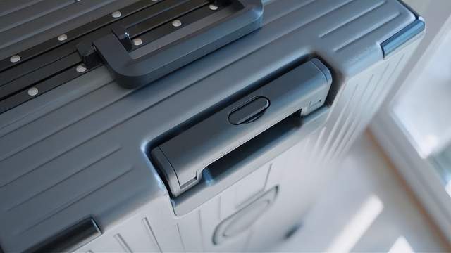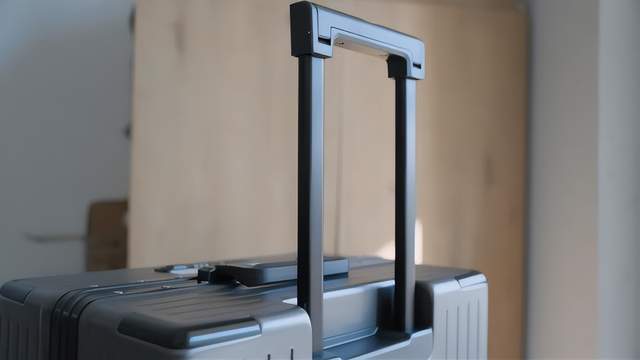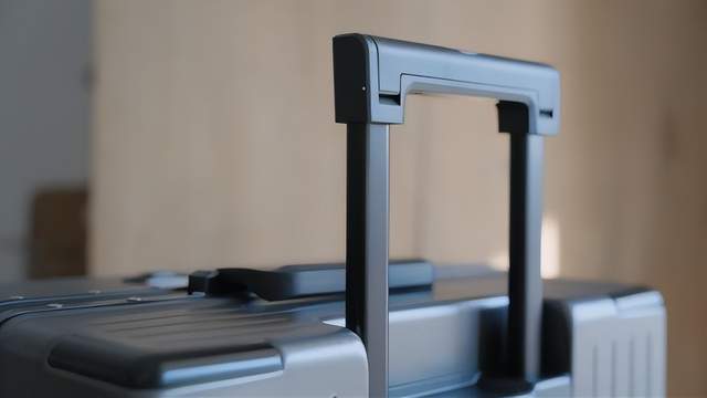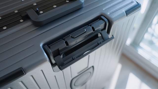这个细节大家也可以注意到,就是以前我们竖着搬行李箱的时候,会用到这个拉杆,由于有这个按钮在上面,导致一用力杆子就拉出来了,非常难搬。所以GaKior在把手上增加了一个镂空的盖子,搬运时把它盖住就不会碰到按钮了。
